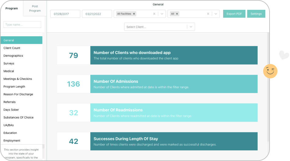 Complete visibility into your programs’ aggregate and individual clients’ outcomes
